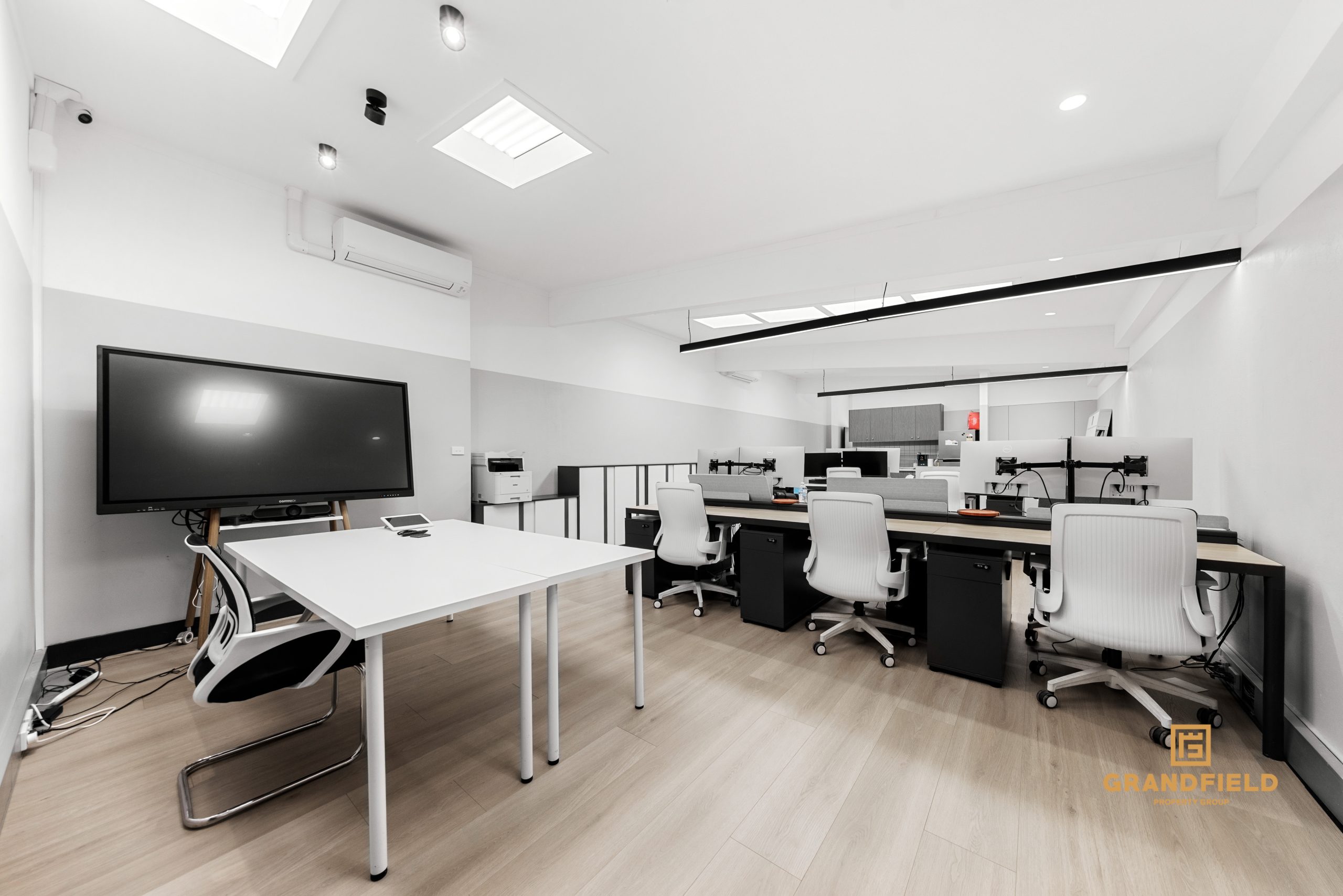 - Front reception with waiting area, director's office, open plan work space, 2 separate meeting rooms, kitchenette, male & female toilets to accommodate all daily business needs